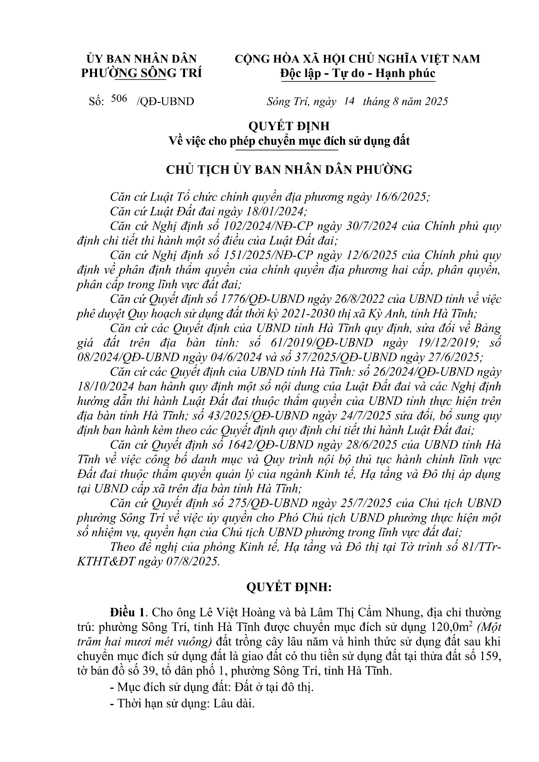 506/QĐ-UBND Quyết định về việc cho phép chuyển mục đích sử dụng đấtẨn danh18/09/2025A -A+Ẩn danh18/09/2025A -A+506/QĐ-UBND Quyết định về việc cho phép chuyển mục đích sử dụng đất