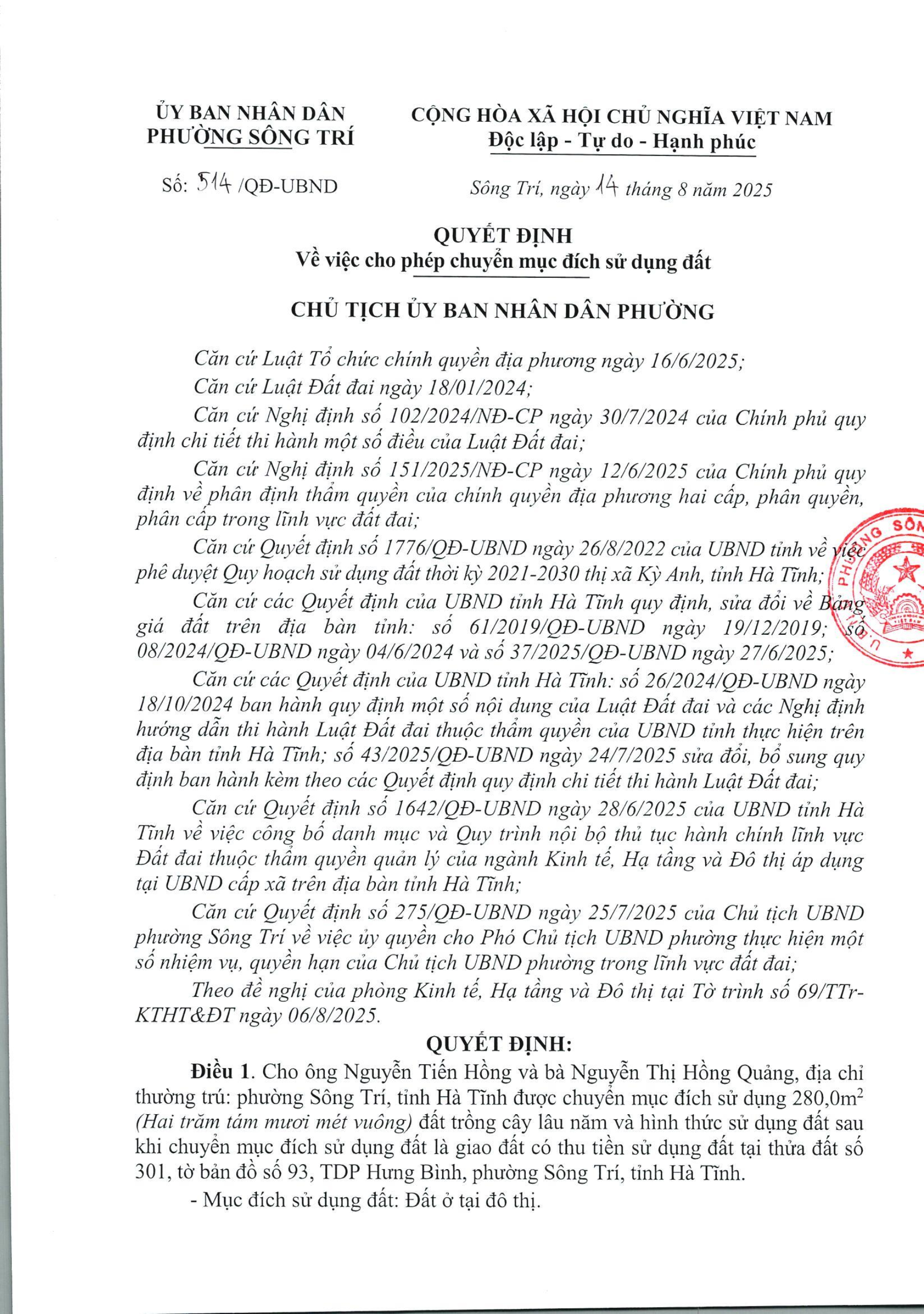 514/QĐ-UBND Quyết định về việc cho phép chuyển mục đích sử dụng đấtẨn danh18/09/2025A -A+Ẩn danh18/09/2025A -A+514/QĐ-UBND Quyết định về việc cho phép chuyển mục đích sử dụng đất