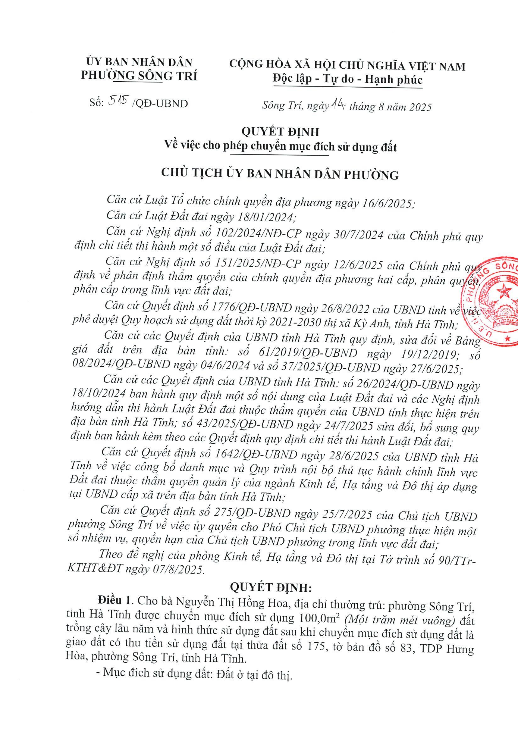 515/QĐ-UBND Quyết định về việc cho phép chuyển mục đích sử dụng đấtẨn danh18/09/2025A -A+Ẩn danh18/09/2025A -A+515/QĐ-UBND Quyết định về việc cho phép chuyển mục đích sử dụng đất