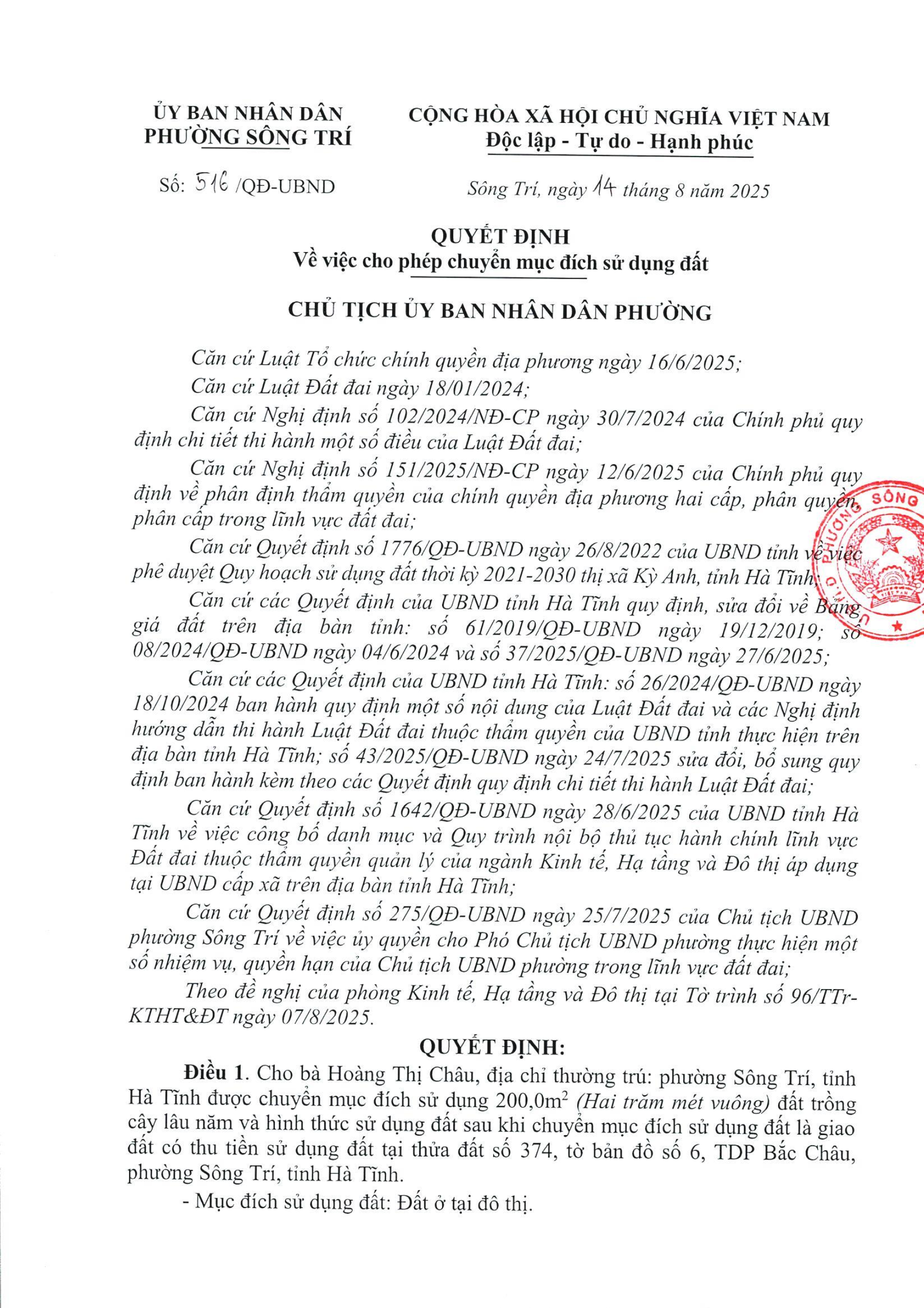 516/QĐ-UBND Quyết định về việc cho phép chuyển mục đích sử dụng đấtẨn danh18/09/2025A -A+Ẩn danh18/09/2025A -A+516/QĐ-UBND Quyết định về việc cho phép chuyển mục đích sử dụng đất