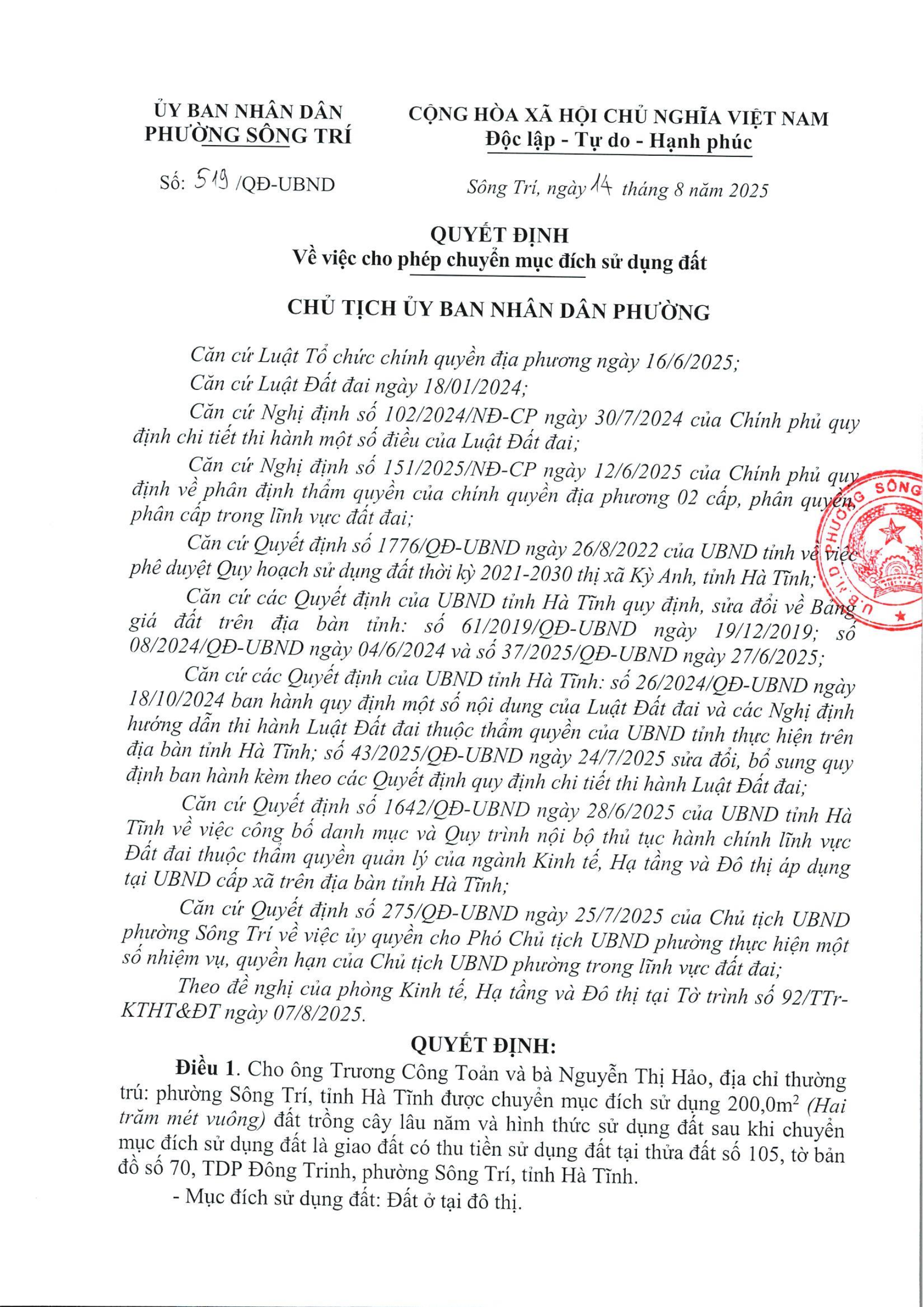 519/QĐ-UBND Quyết định về việc cho phép chuyển mục đích sử dụng đấtẨn danh18/09/2025A -A+Ẩn danh18/09/2025A -A+519/QĐ-UBND Quyết định về việc cho phép chuyển mục đích sử dụng đất