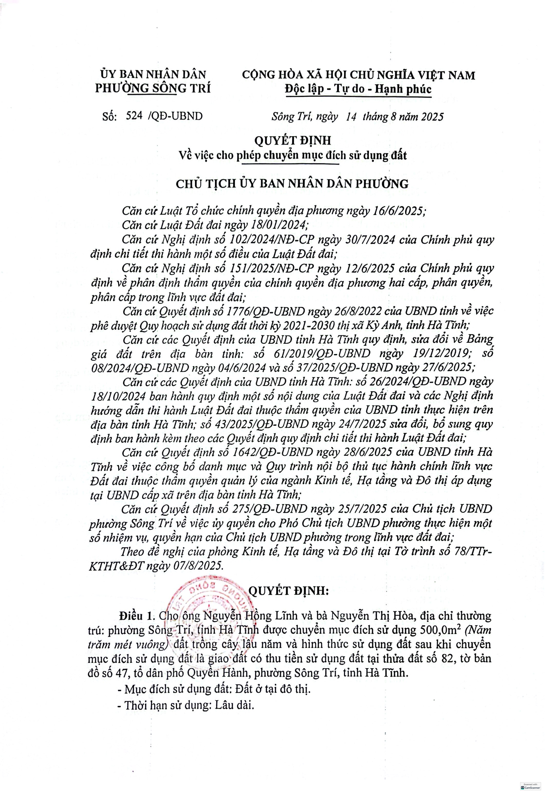 524/QĐ-UBND Quyết định về việc cho phép chuyển mục đích sử dụng đấtẨn danh18/09/2025A -A+Ẩn danh18/09/2025A -A+524/QĐ-UBND Quyết định về việc cho phép chuyển mục đích sử dụng đất