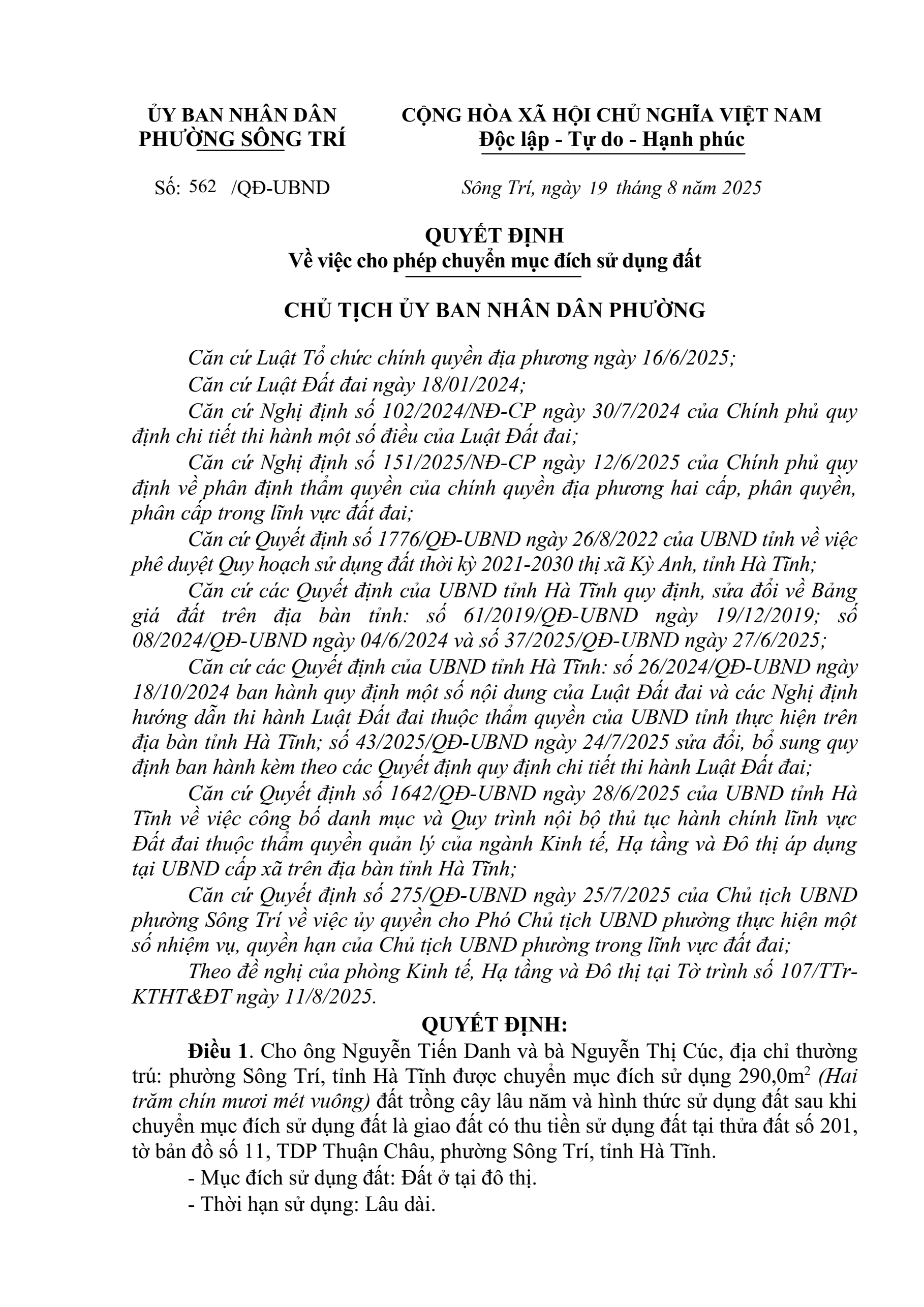 562/QĐ-UBND Quyết định về việc cho phép chuyển mục đích sử dụng đấtẨn danh18/09/2025A -A+Ẩn danh18/09/2025A -A+562/QĐ-UBND Quyết định về việc cho phép chuyển mục đích sử dụng đất
