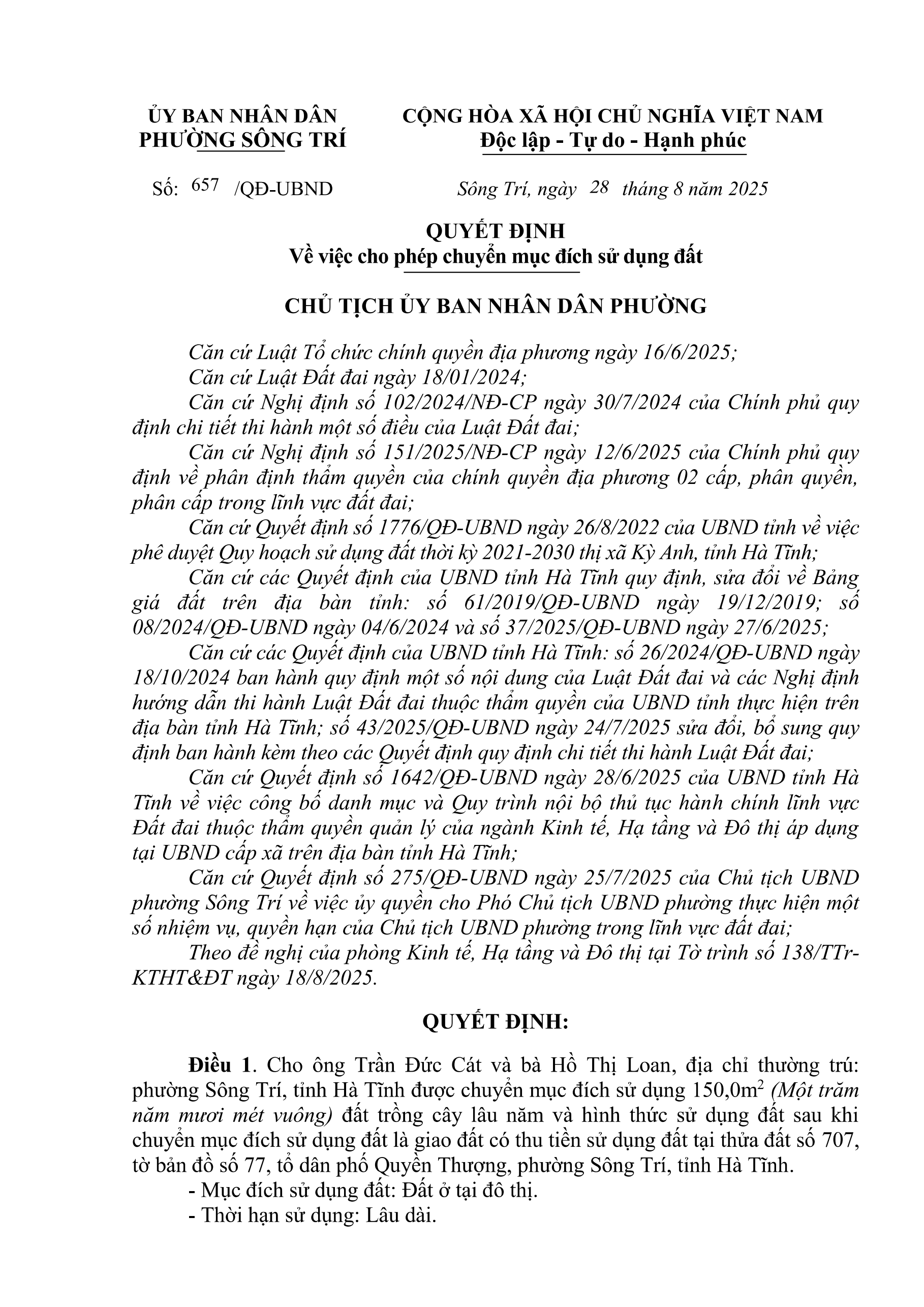 657/QĐ-UBND Quyết định về việc cho phép chuyển mục đích sử dụng đấtẨn danh18/09/2025A -A+Ẩn danh18/09/2025A -A+657/QĐ-UBND Quyết định về việc cho phép chuyển mục đích sử dụng đất