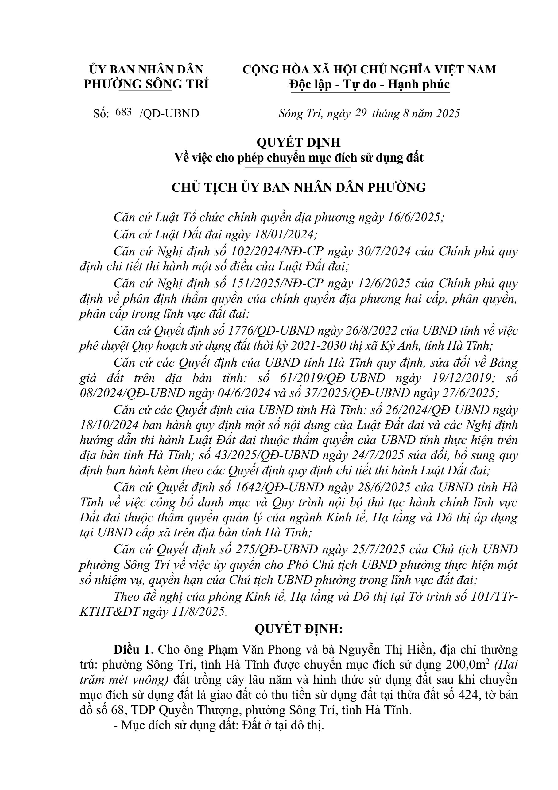 683/QĐ-UBND Quyết định về việc cho phép chuyển mục đích sử dụng đấtẨn danh18/09/2025A -A+Ẩn danh18/09/2025A -A+683/QĐ-UBND Quyết định về việc cho phép chuyển mục đích sử dụng đất