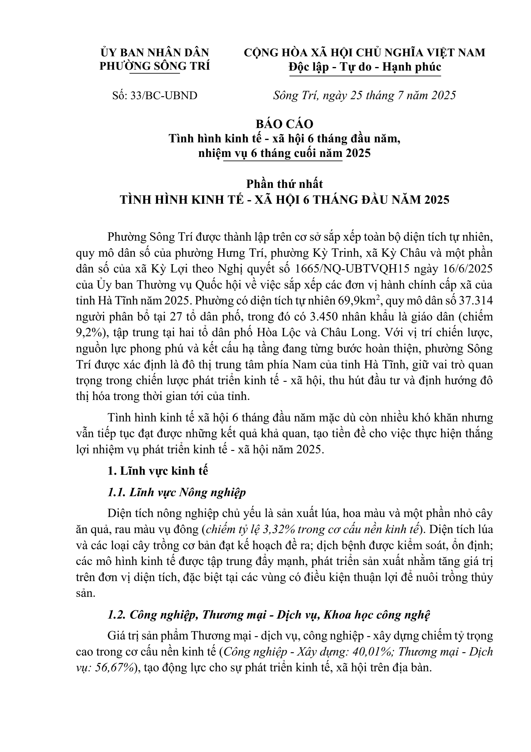 Báo cáo tình hình kinh tế - xã hội 6 tháng đầu năm, nhiệm vụ 6 tháng cuối năm 2025 Ẩn danh25/07/2025A -A+Ẩn danh25/07/2025A -A+ File đính kèmBáo cáo kinh tế - xã hội 6 tháng đầu năm 2025.pdf