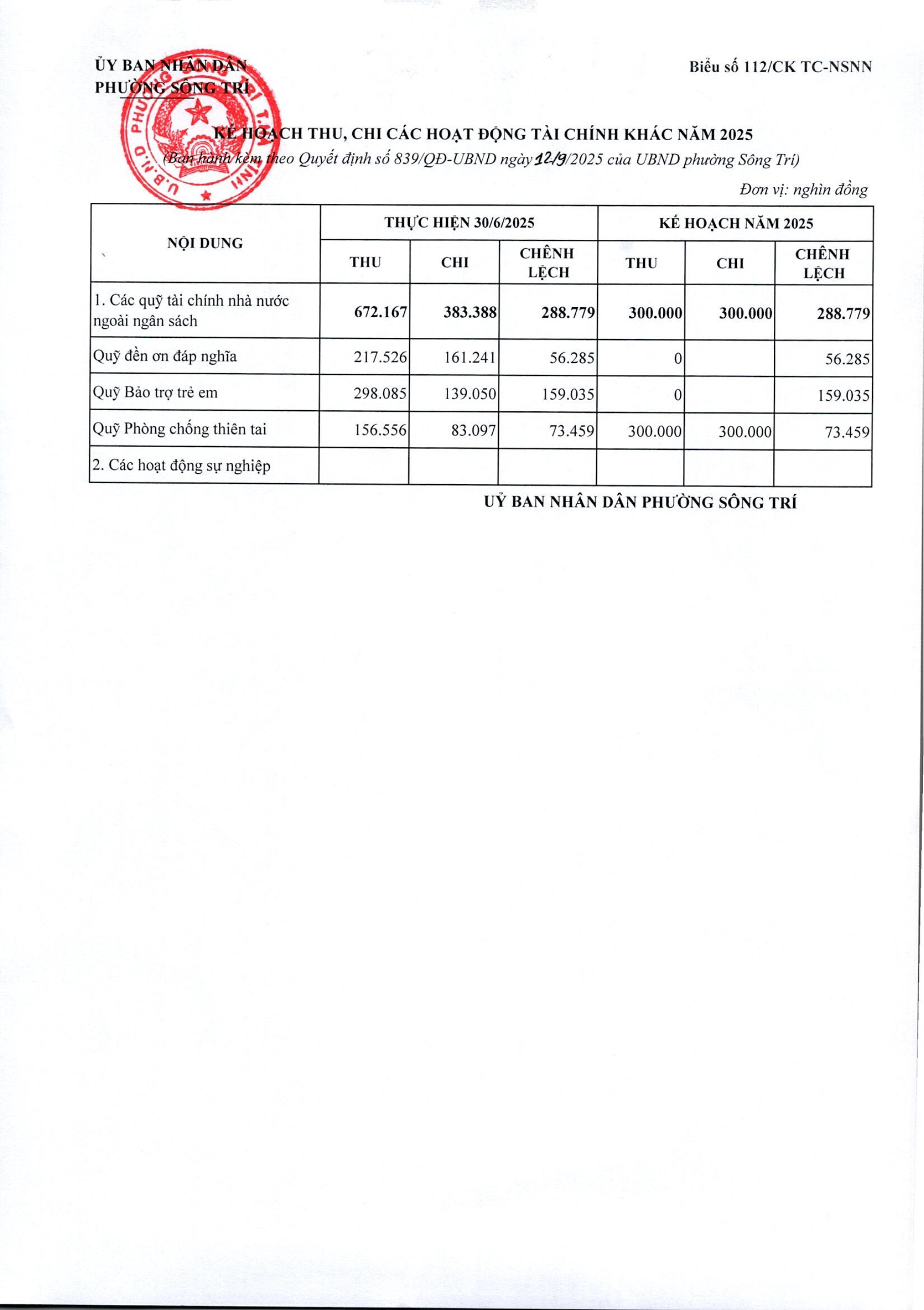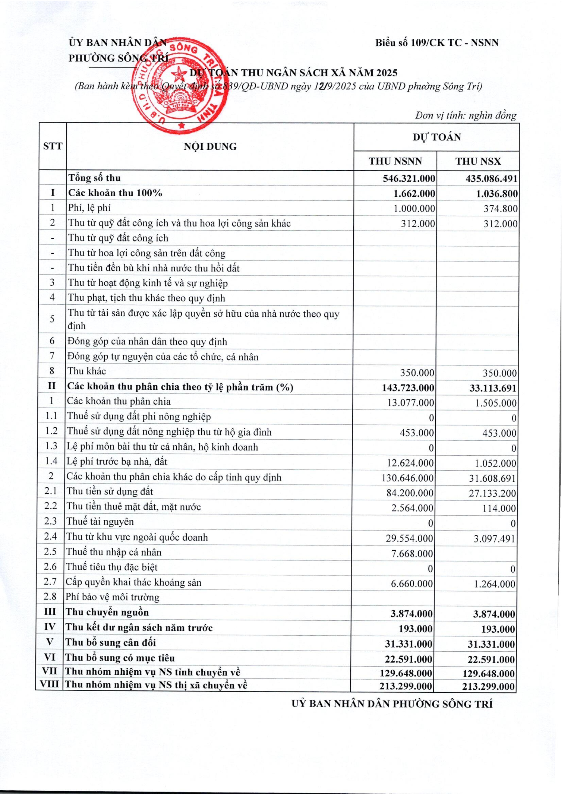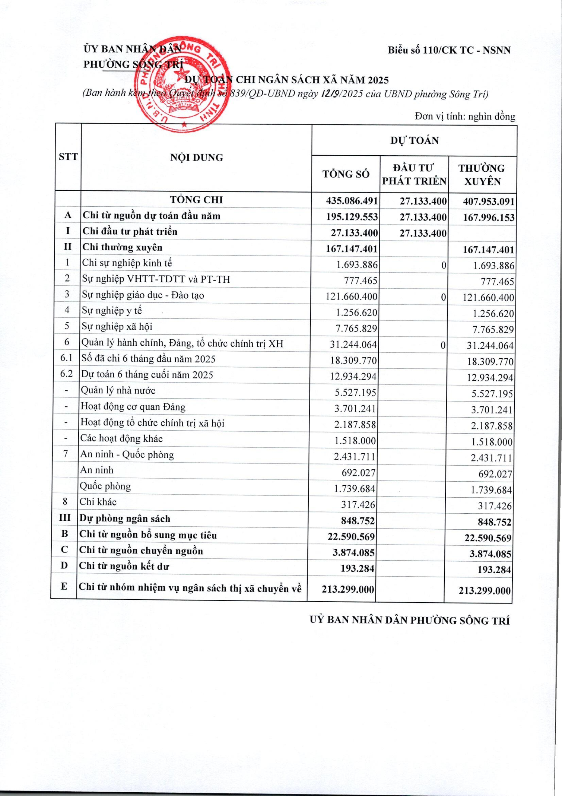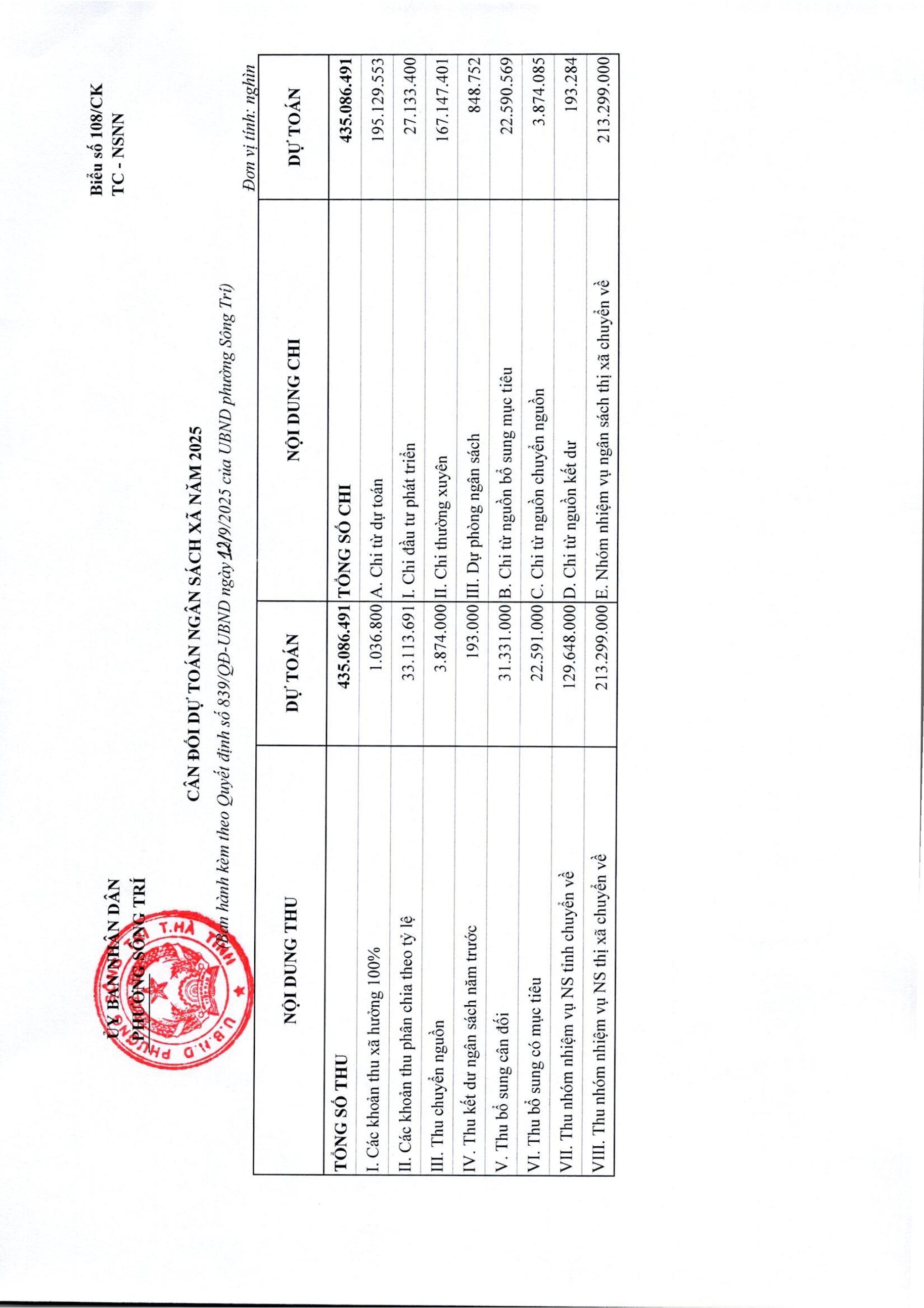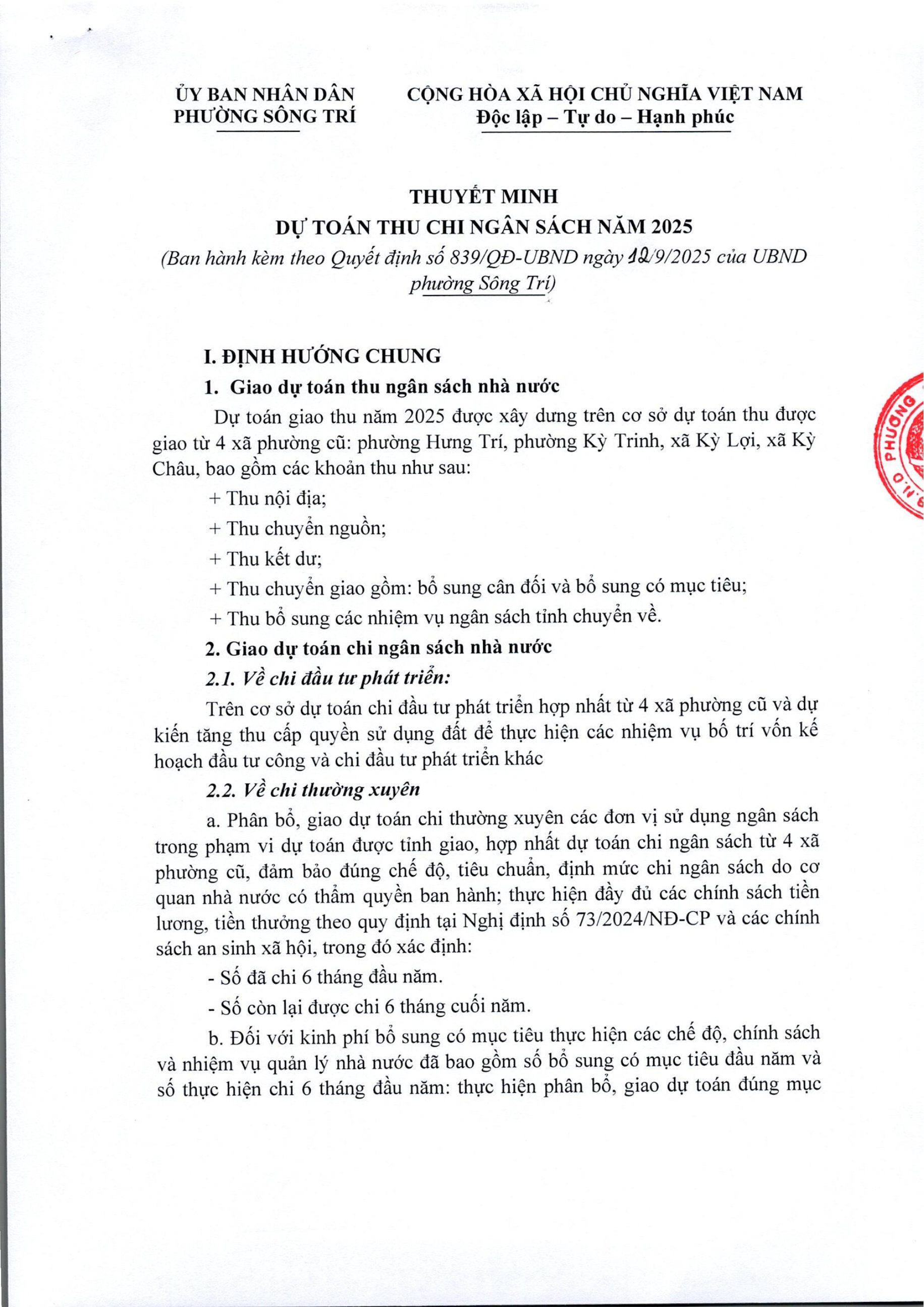 Công khai số liệu và thuyết minh dự toán thu chi ngân sách phường Sông Trí năm 2025Ẩn danh12/09/2025A -A+Ẩn danh12/09/2025A -A+Công khai số liệu và thuyết minh dự toán thu chi ngân sách phường Sông Trí năm 2025