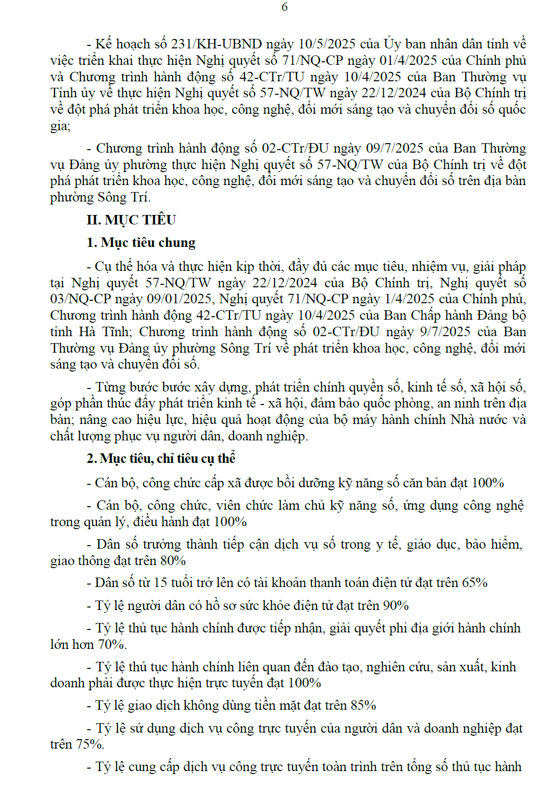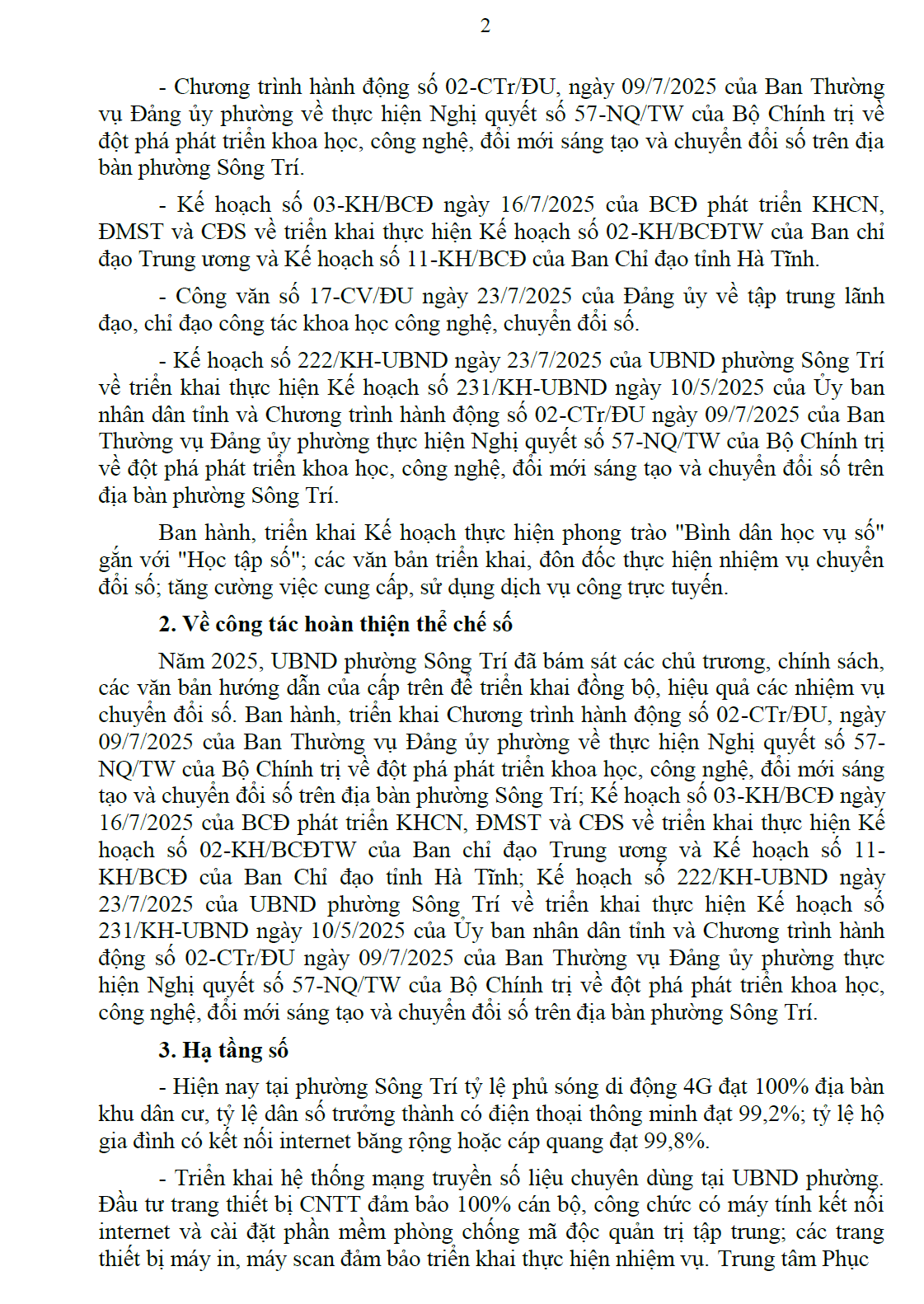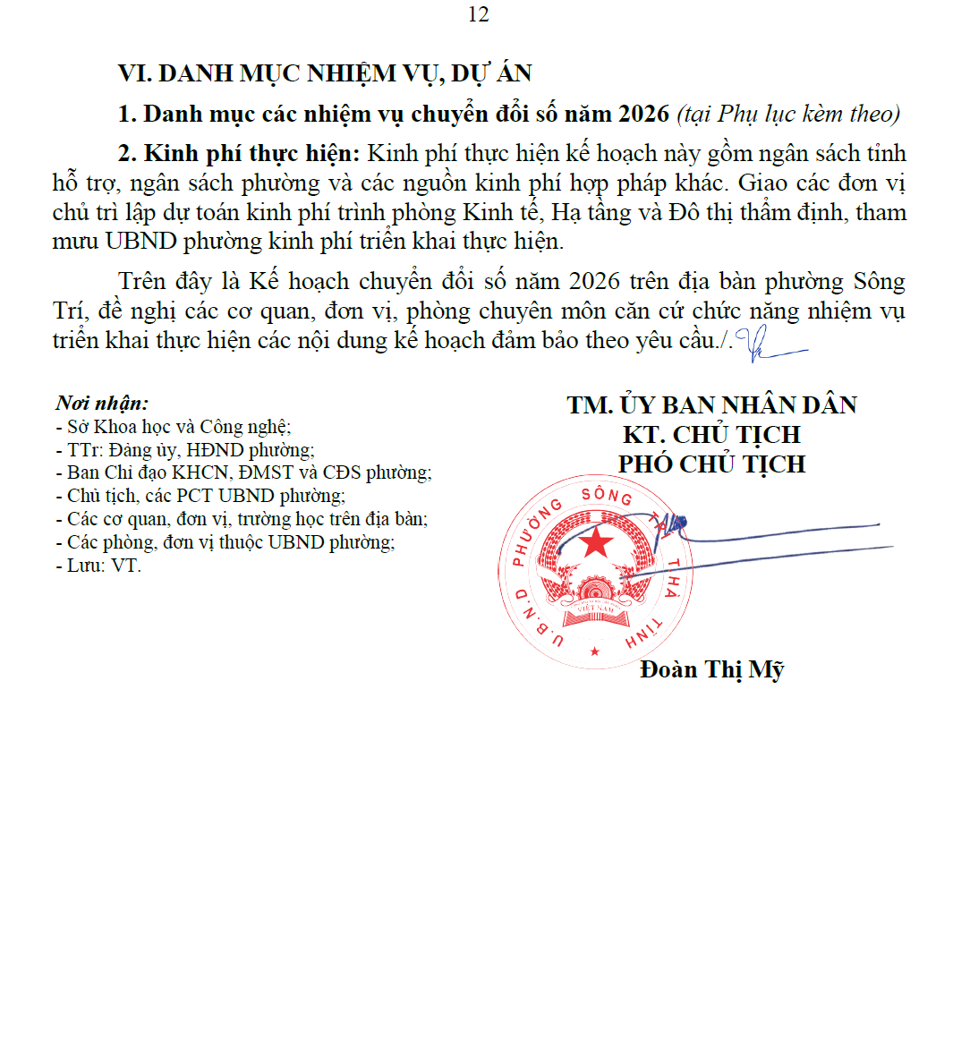 Kế hoạch chuyển đổi số trên địa bàn phường Sông Trí năm 2026