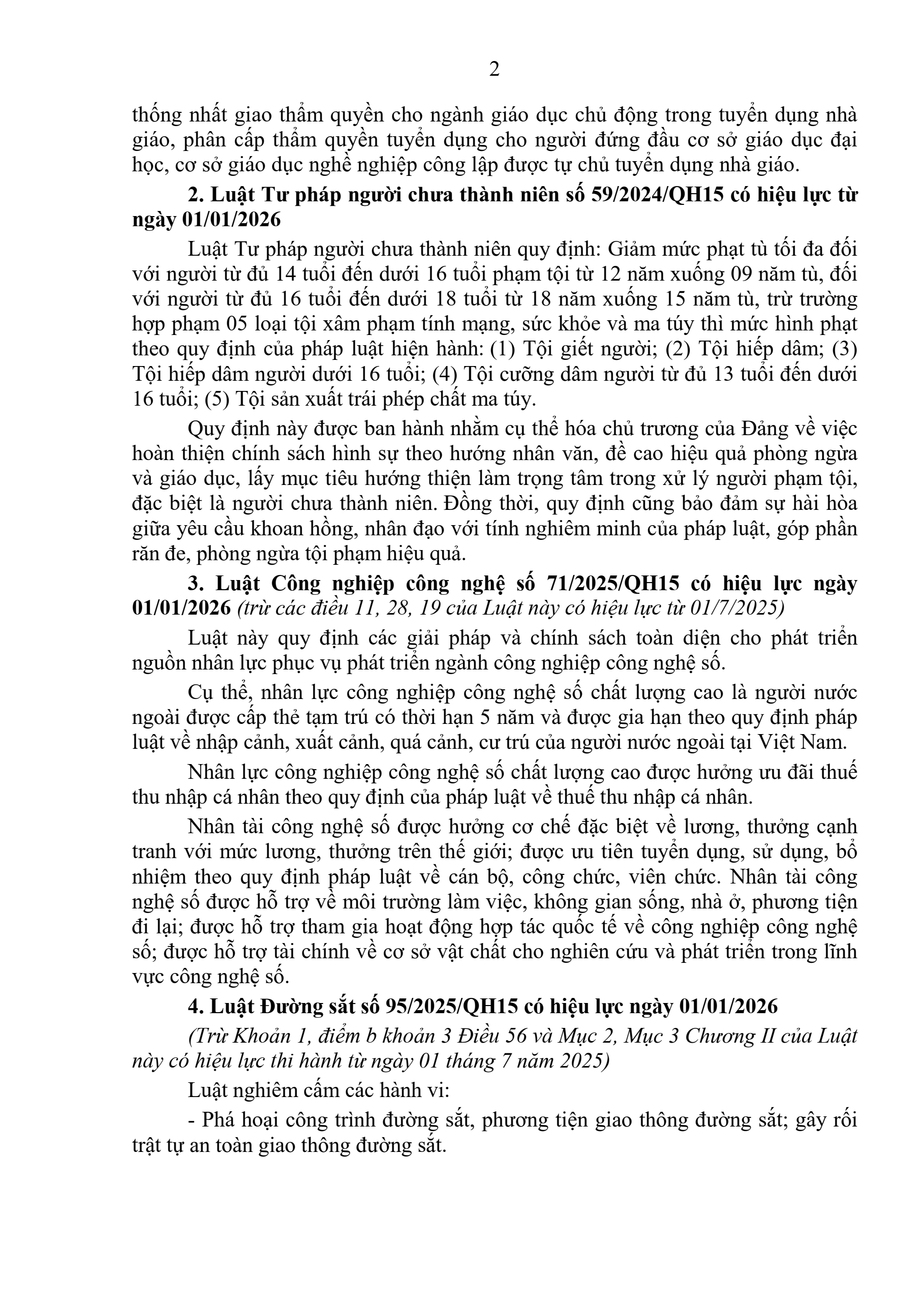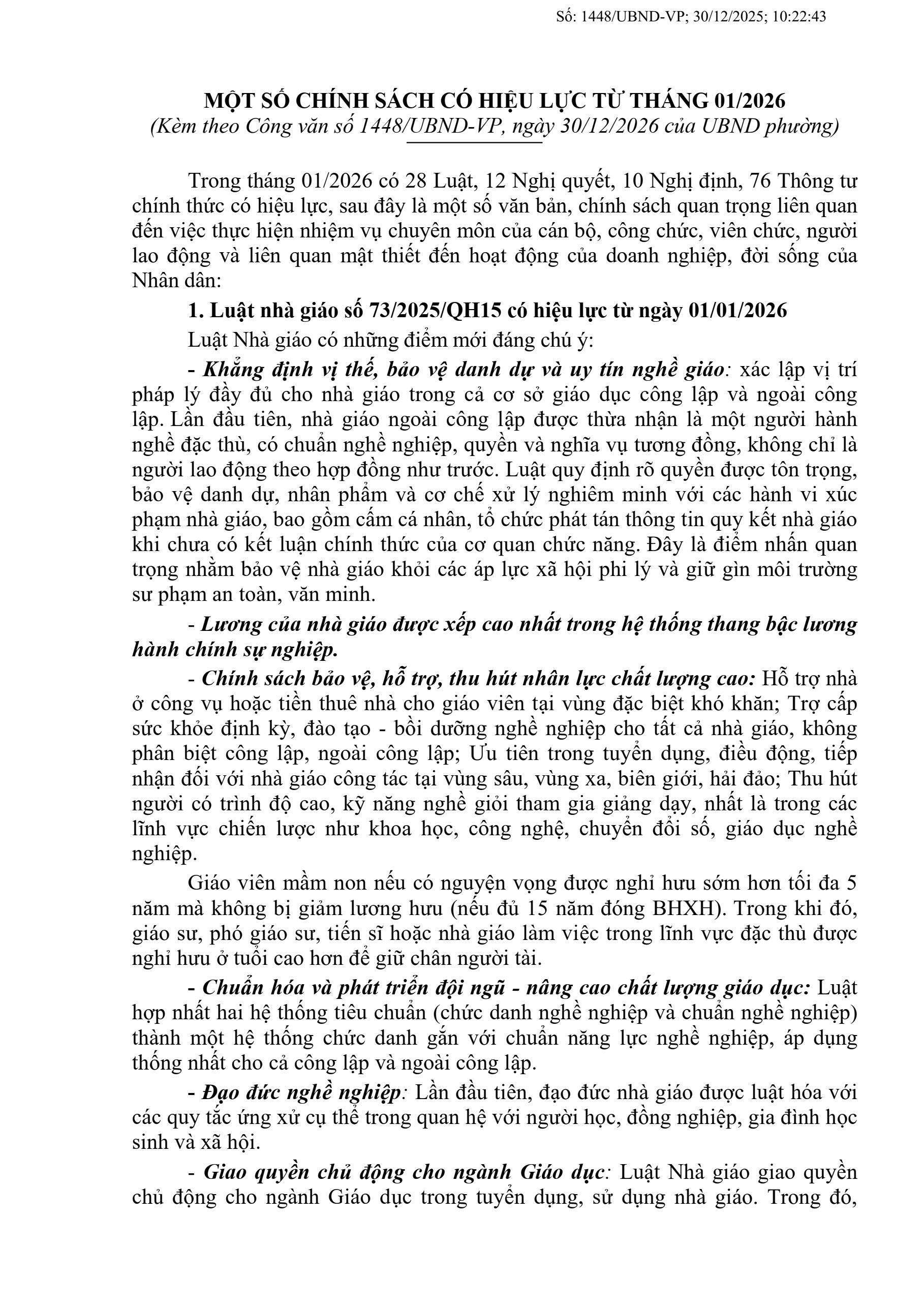 Trong tháng 01/2026 có 28 Luật, 12 Nghị quyết, 10 Nghị định, 76 Thông tư chính thức có hiệu lực, sau đây là một số văn bản, chính sách quan trọng liên quan
