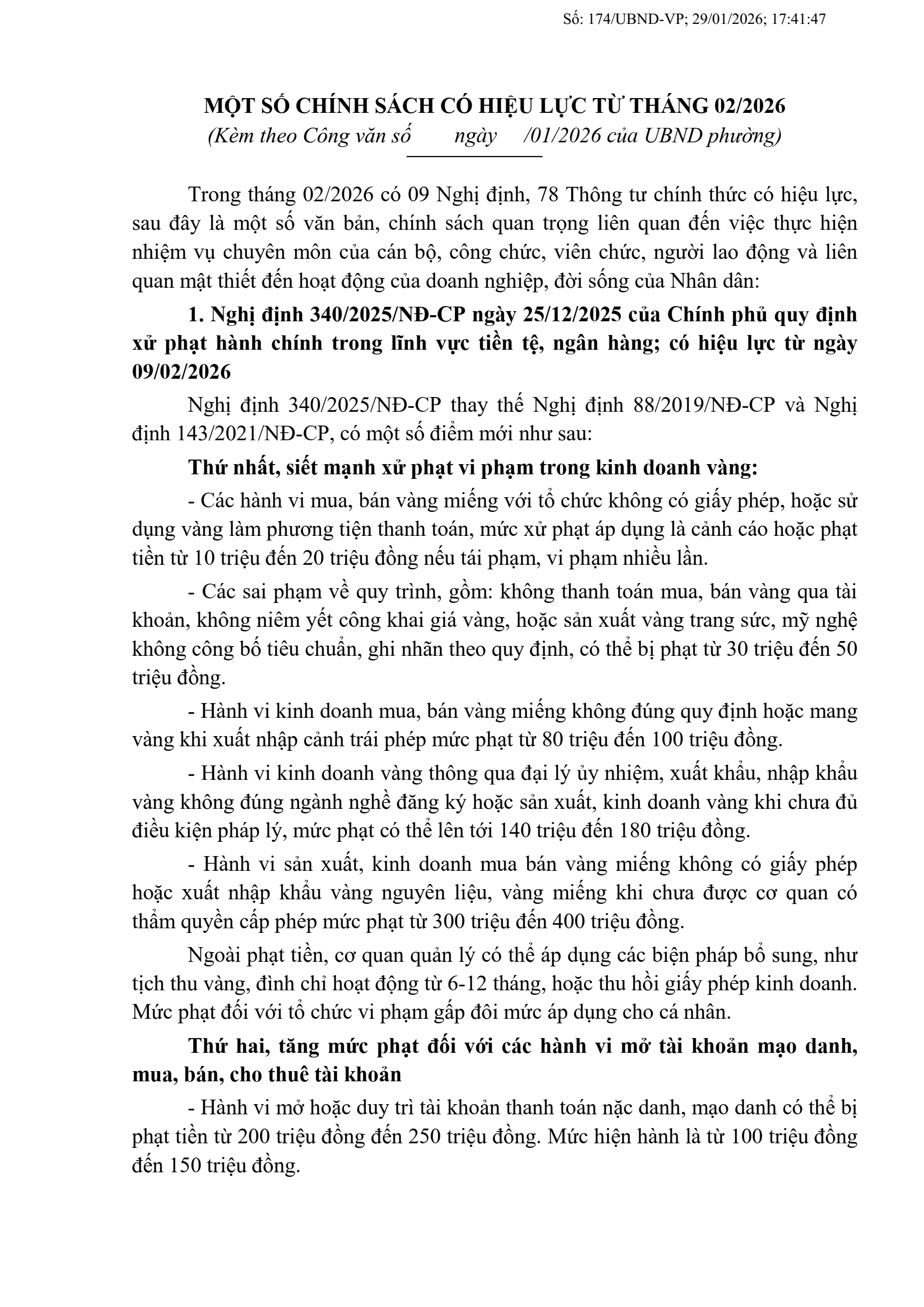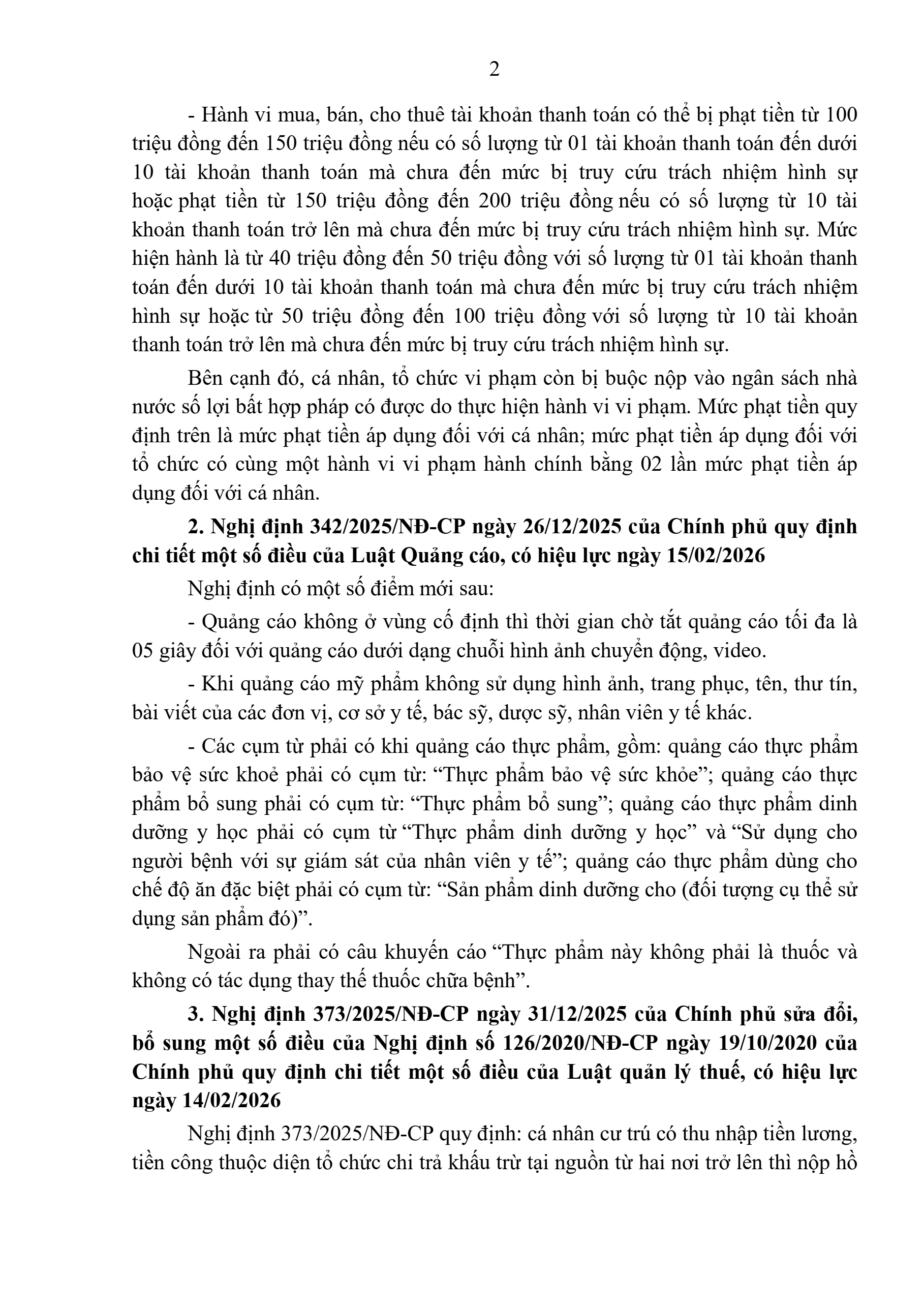 Trong tháng 02/2026 có 09 Nghị định, 78 Thông tư chính thức có hiệu lực, sau đây là một số văn bản, chính sách quan trọng liên quan đến việc thực hiện