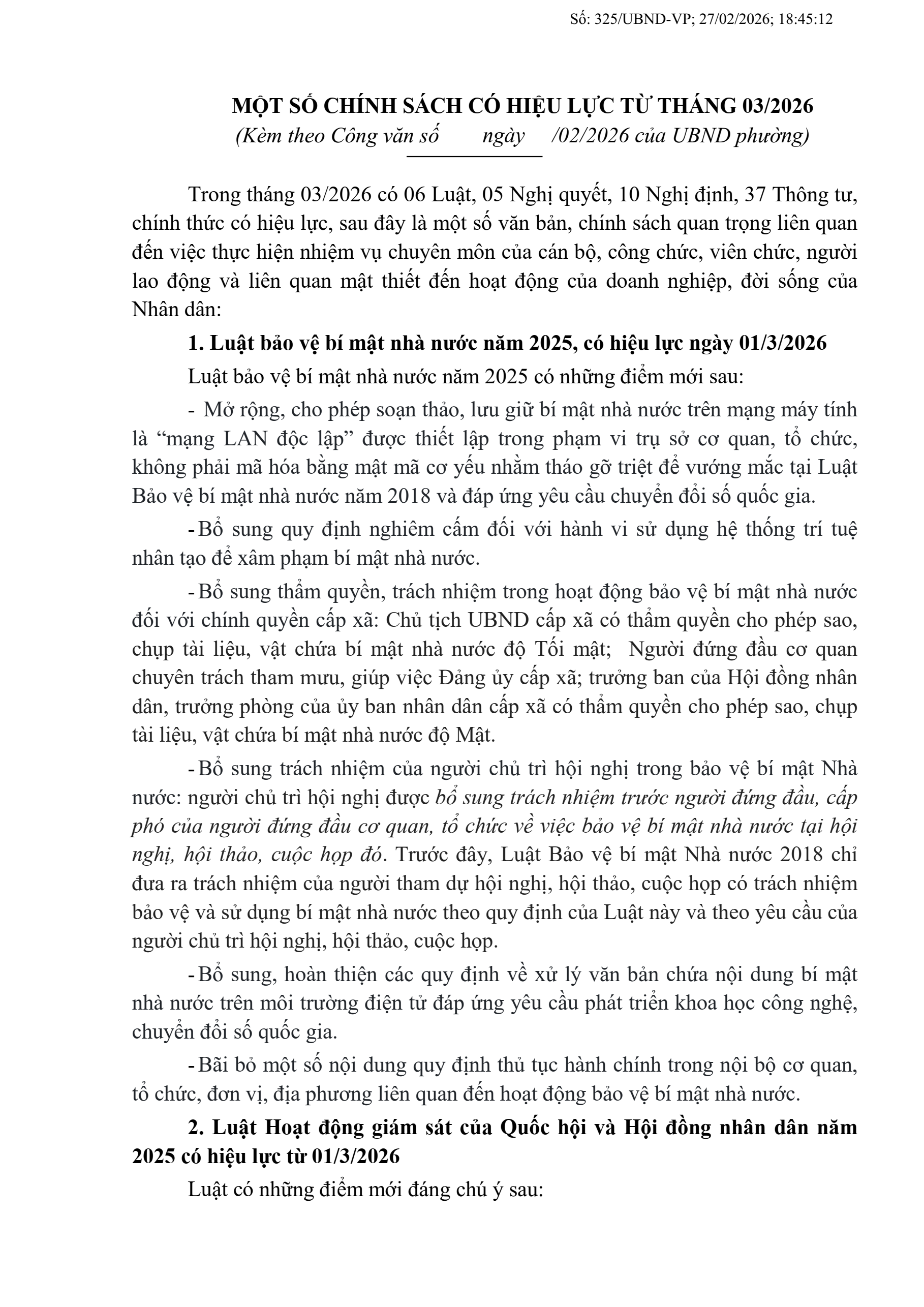 Trong tháng 03/2026 có 06 Luật, 05 Nghị quyết, 10 Nghị định, 37 Thông tư, chính thức có hiệu lực, sau đây là một số văn bản, chính sách quan trọng liên quan