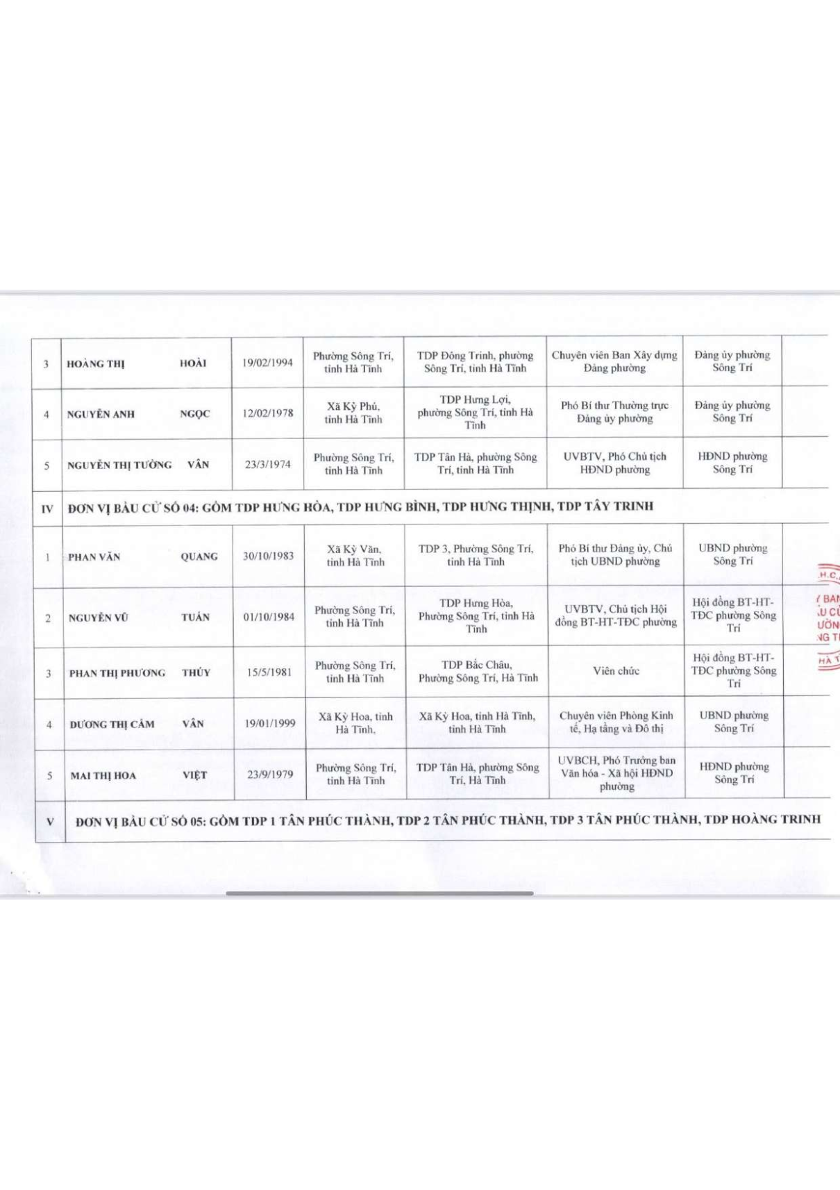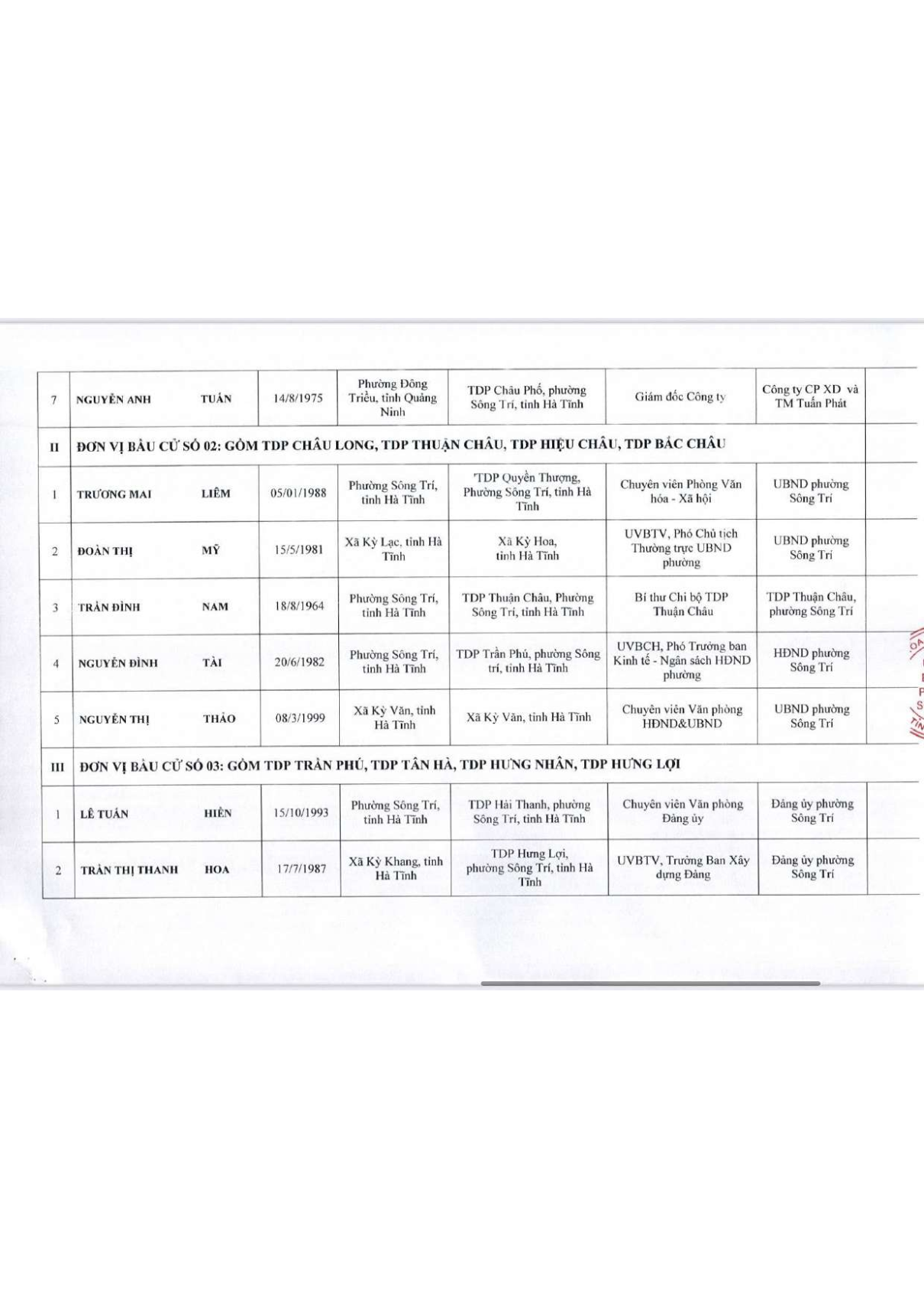 Tin liên quanBan Thường trực Ủy ban MTTQ tỉnh Hà Tĩnh tổ chức Hội nghị tiếp xúc cử tri với những người ứng cử đại biểu Quốc hội khoá XVI và đại biểu HĐND tỉnh khoá XIX, nhiệm kỳ 2026 - 2031Hội nghị tập huấn nghiệp vụ cho các Tổ bầu cử phục vụ cuộc bầu cử đại biểu Quốc hội Việt Nam khóa XVI và đại biểu HĐND các cấp nhiệm kỳ 2026 – 2031Khai mạc Giải bóng chuyền nam thanh niên cấp cụm năm 2026Phường Sông Trí hưởng ứng phong trào “Tết trồng cây đời đời nhớ ơn Bác Hồ” Xuân Bính Ngọ năm 2026Phường Sông Trí tổ chức Lễ mừng thọ - Lan tỏa truyền thống Kính lão - Trọng thọ