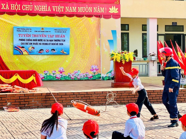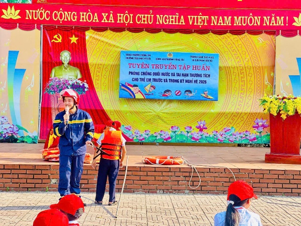 Tại buổi tuyên truyền, cán bộ Phòng Cảnh sát PCCC và CNCH đã phổ biến đến các em học sinh những kiến thức cơ bản về nguyên nhân, nguy cơ dẫn đến tai nạn đuối nước thường gặp, đặc biệt trong thời gian nghỉ học, dịp hè khi các em thường xuyên vui chơi tại ao, hồ, sông, suối. Đồng thời hướng dẫn các em một số kỹ năng cần thiết để phòng tránh đuối nước như: không tự ý tắm sông, tắm hồ khi không có người lớn đi cùng; không chơi đùa, xô đẩy nhau tại khu vực gần sông, hồ, kênh, mương; biết kêu cứu và tìm sự hỗ trợ của người lớn khi phát hiện người bị đuối nước. Bên cạnh đó, các em học sinh còn được hướng dẫn một số kỹ năng cơ bản trong việc xử lý tình huống khi gặp người bị đuối nước như: nhanh chóng gọi người lớn đến hỗ trợ, sử dụng các vật dụng nổi như phao, can nhựa, cành cây… để hỗ trợ người gặp nạn thay vì trực tiếp nhảy xuống cứu khi chưa có kỹ năng, tránh xảy ra những tai nạn đáng tiếc.