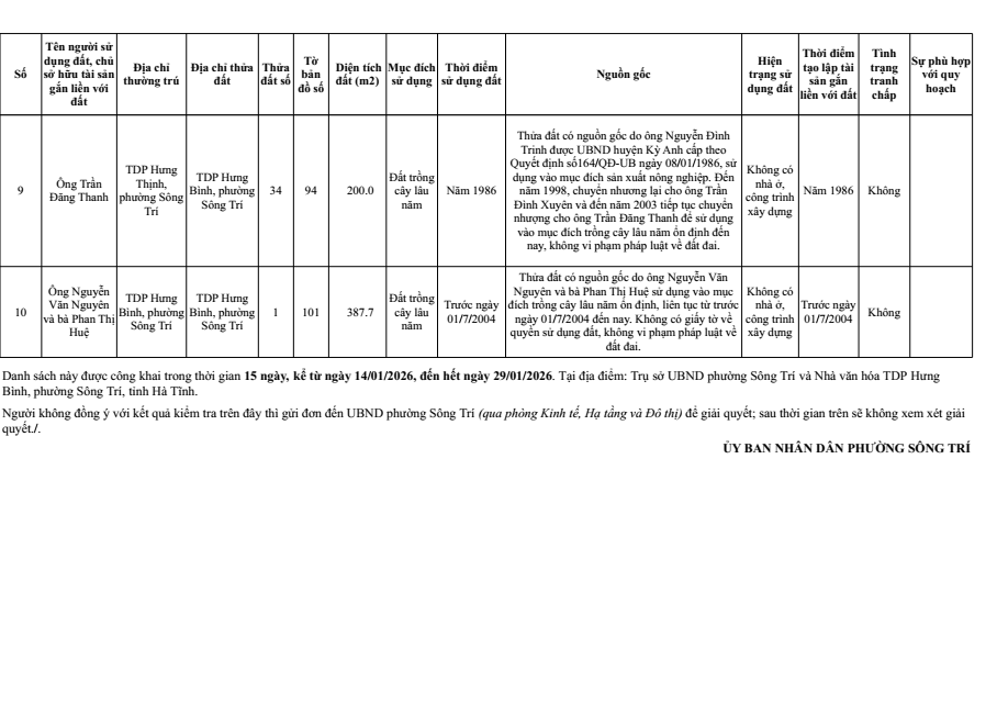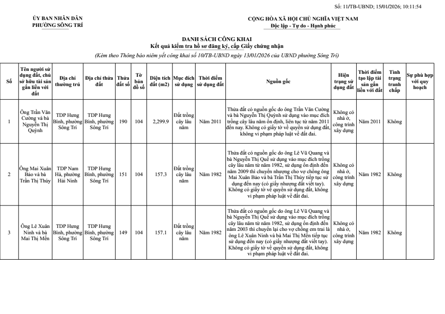 Thông báo 10/TB-UBND niêm yết công khai kết quả kiểm tra hồ sơ đăng ký, cấp Giấy chứng nhận quyền sử dụng đấtẨn danh13/01/2026A -A+Ẩn danh13/01/2026A -A+ File đính kèmTB 10 - Niêm yết công khai Cấp GCN lần đầu Hưng Bình.pdf