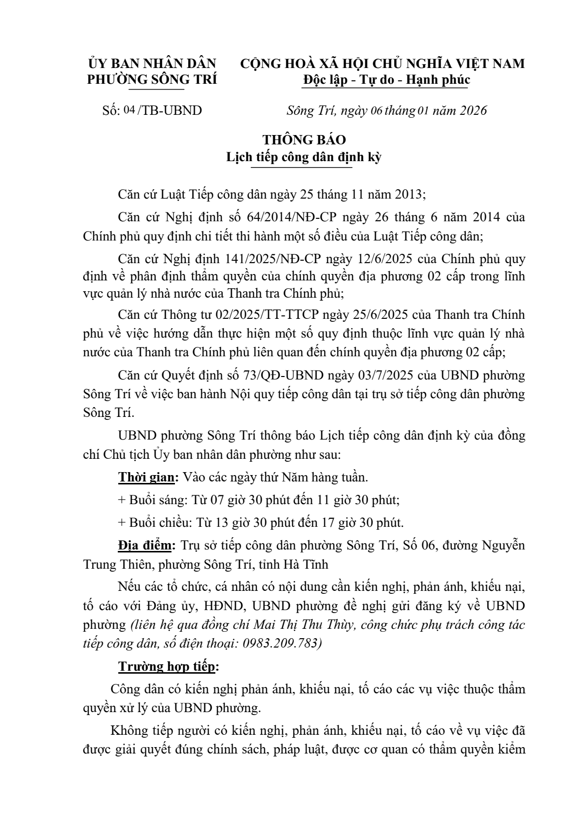 Thông báo thời gian, thành phần tham dự duyệt Đại hội Đảng bộ phường Sông Trí lần thứ I, nhiệm kỳ 2025-2030Thông báo phân công các Đoàn dự và chúc mừng các cơ sở giáo dục trên địa bàn nhân dịp Lễ khai giảng năm học 2025 - 2026Thông báo xác nhận kết quả đăng ký đất đaiKết luận của Phó Chủ tịch Ủy ban nhân dân phường Đoàn Thị Mỹ tại cuộc họp triển khai kế hoạch tổ chức các hoạt động kỷ niệm 60 năm Ngày thành lập trường THPT Kỳ AnhThông báo Kết quả kiểm tra hồ sơ đăng ký, cấp giấy Chứng nhận Bà Nguyễn Thị XuânThông báo kiểm tra hồ sơ đăng ký, Cấp giấy chứng nhận ông Hoàng Đình TiếnThông báo thời gian, thành phần tham dự duyệt Đại hội Đảng bộ phường Sông Trí lần thứ I, nhiệm kỳ 2025-2030Thông báo phân công các Đoàn dự và chúc mừng các cơ sở giáo dục trên địa bàn nhân dịp Lễ khai giảng năm học 2025 - 2026Thông báo xác nhận kết quả đăng ký đất đaiKết luận của Phó Chủ tịch Ủy ban nhân dân phường Đoàn Thị Mỹ tại cuộc họp triển khai kế hoạch tổ chức các hoạt động kỷ niệm 60 năm Ngày thành lập trường THPT Kỳ AnhThông báo Kết quả kiểm tra hồ sơ đăng ký, cấp giấy Chứng nhận Bà Nguyễn Thị XuânThông báo kiểm tra hồ sơ đăng ký, Cấp giấy chứng nhận ông Hoàng Đình TiếnThông báo thời gian, thành phần tham dự duyệt Đại hội Đảng bộ phường Sông Trí lần thứ I, nhiệm kỳ 2025-2030Thông báo phân công các Đoàn dự và chúc mừng các cơ sở giáo dục trên địa bàn nhân dịp Lễ khai giảng năm học 2025 - 2026Thông báo xác nhận kết quả đăng ký đất đaiKết luận của Phó Chủ tịch Ủy ban nhân dân phường Đoàn Thị Mỹ tại cuộc họp triển khai kế hoạch tổ chức các hoạt động kỷ niệm 60 năm Ngày thành lập trường THPT Kỳ AnhThông báo Kết quả kiểm tra hồ sơ đăng ký, cấp giấy Chứng nhận Bà Nguyễn Thị XuânThông báo kiểm tra hồ sơ đăng ký, Cấp giấy chứng nhận ông Hoàng Đình Tiến