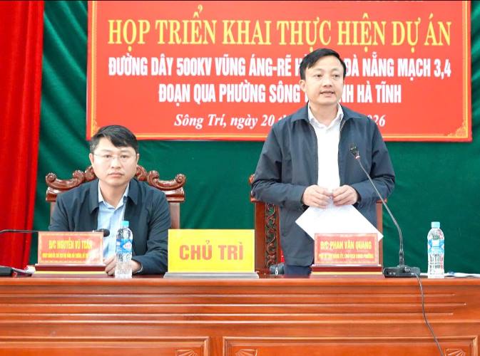 Phát biểu chỉ đạo và kết luận hội nghị, đồng chí Phan Văn Quang - Phó Bí thư Đảng ủy, Chủ tịch UBND phường Sông Trí nhấn mạnh: Dự án đường dây 500kV Vũng Áng - rẽ Hà Tĩnh - Đà Nẵng là công trình trọng điểm quốc gia, có ý nghĩa đặc biệt quan trọng trong bảo đảm an ninh năng lượng và phát triển kinh tế - xã hội. Đồng chí yêu cầu Hội đồng bồi thường, hỗ trợ và tái định cư, các bộ phận chuyên môn và các tổ dân phố liên quan tập trung triển khai đầy đủ, đúng quy trình các bước bồi thường, giải phóng mặt bằng; bảo đảm công khai, minh bạch, đúng chính sách, đúng đối tượng, tạo sự đồng thuận trong Nhân dân; góp phần đẩy nhanh tiến độ giải phóng mặt bằng, bảo đảm dự án được triển khai đúng kế hoạch, an toàn và hiệu quả, đáp ứng yêu cầu về an ninh năng lượng quốc gia.